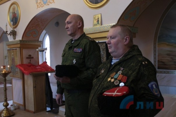 Казаки луганского регионального отделения Союза казаков–воинов России и зарубежья (СКВРиЗ) приняли участие в богослужении по освящению образа Архистратига Михаила – списка с канонического образа Архангела, переданного в дар от российских побратимов.