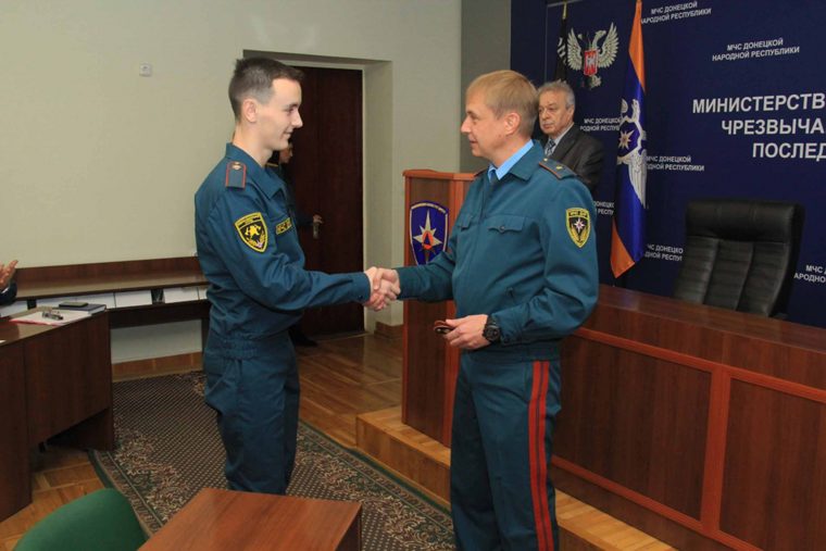 В торжественной обстановке министр по делам ГО, ЧС и ликвидации последствий стихийных бедствий, генерал-майор службы гражданской защиты Алексей Кострубицкий вручил троим выпускникам погоны лейтенанта службы гражданской защиты МЧС ДНР и пожелал успешного прохождения службы. Источник