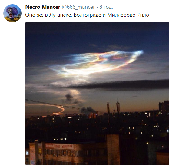 Появившееся в небе над Донбассом загадочное природное явление вызвало переполох в социальных сетях. Необычное свечение в небе видели и на территории России.