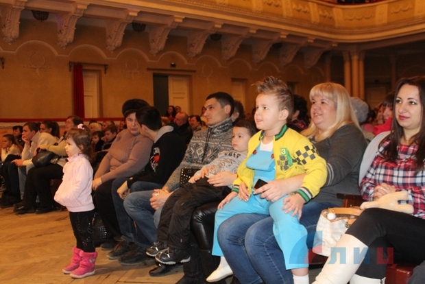 "Сегодня мы совместно с Республиканским дворцом культуры проводим для детей ветеранов и участников боевых действий, членов нашей организации, детей "чернобыльцев" эту новогоднюю сказку. Для нашей категории детей пришла гуманитарная помощь из Москвы от общественной организации "Родительское всероссийское сопротивление", которая с 2014 года занимается гуманитарной помощью учебным детским учреждениям ЛНР. Спасибо им, что они подготовили нам подарки, которые будут выданы в конце представления", - рассказал председатель ветеранской организации Сергей Шонин.