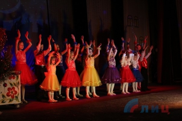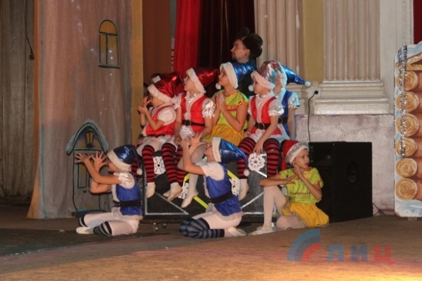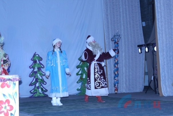 Творческие коллективы ДК помогли детишкам встретиться с героями их любимых старых мультфильмов, познакомили с персонажами новых, а также помогли Деду Морозу и Снегурочке, вопреки Бабе Яге и ее друзьям, доставить подарки веселым гномам. А студенты-практиканты творческих факультетов луганских вузов развлекали посетителей ДК подвижными играми и новогодними загадками. В конце представления дети получили сладкие подарки.