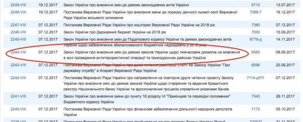 7 декабря 2017 года Верховной Радой Украины было проголосовано Постановление №2244-VIII «О внесении изменений в некоторые законы Украины о временных разрешениях на вещание в зоне проведения АТО и приграничных районах Украины».