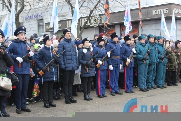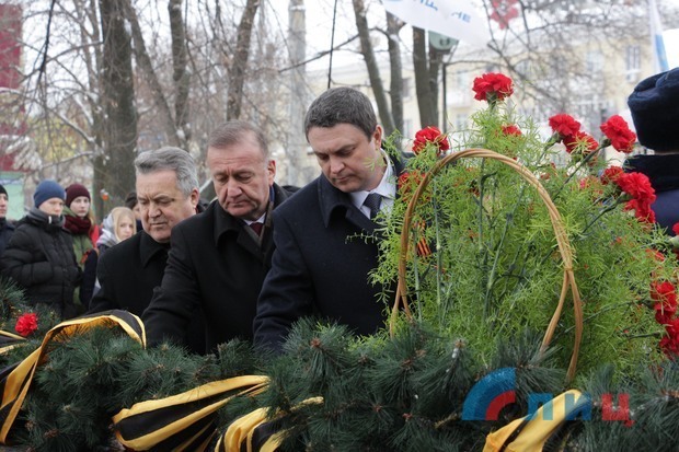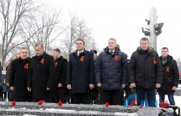 В мероприятии также приняли участие председатель Совета министров ЛНР Сергей Козлов, председатель Народного Совета Республики Денис Мирошниченко, глава столичной администрации Манолис Пилавов, представители Народной милиции, лидеры профсоюзных и общественных организаций ЛНР.