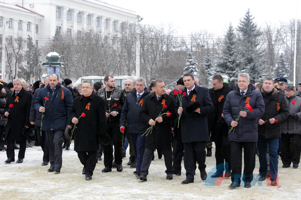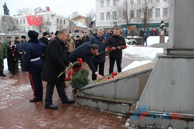 По случаю 75-й годовщины освобождения Луганска почтили память погибших воинов и возложили цветы к Пилону Славы и могиле Неизвестного солдата