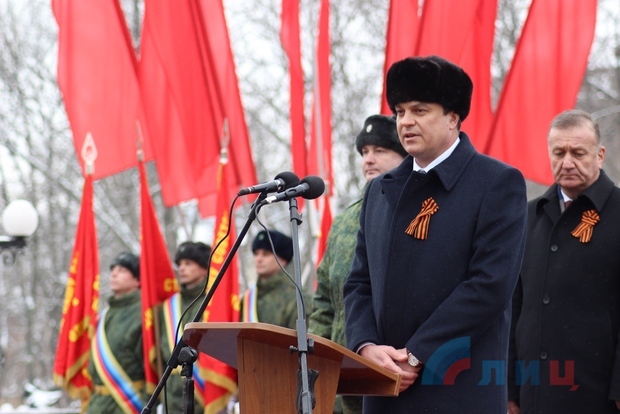 Исполняющий обязанности главы ЛНР Леонид Пасечник принял участие в митинге по случаю 75-й годовщины освобождения Луганска от немецко-фашистских захватчиков.