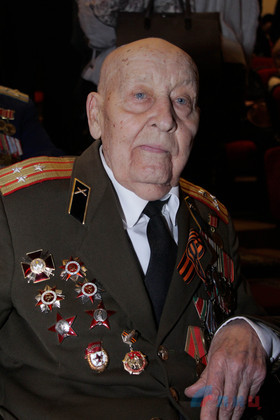 "Очень рад, что я имею возможность на 99-м году жизни присутствовать на этом торжестве, - сказал Зелинский. - Я участвовал в бою по освобождению Ворошиловграда, имея задачу уничтожить или подавить немецкую батарею, чтобы она в процессе нашего наступления не выпустила ни одного снаряда в нашу сторону".