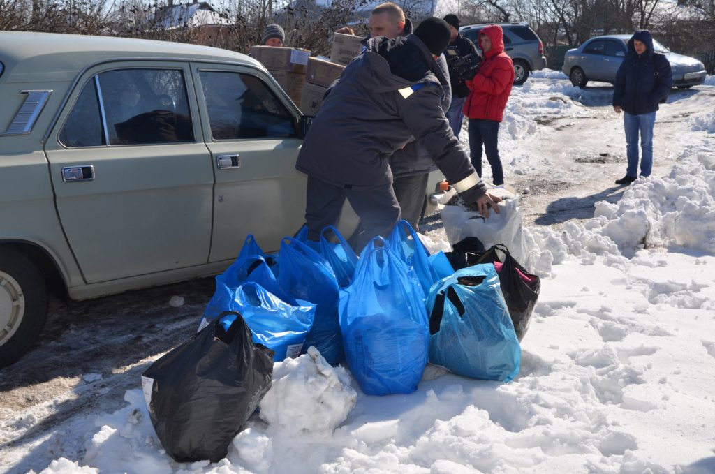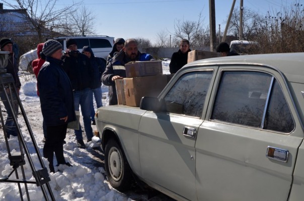 Жители прифронтовых поселков к западу и югу от Донецка получили продукты, медикаменты и бытовой уголь