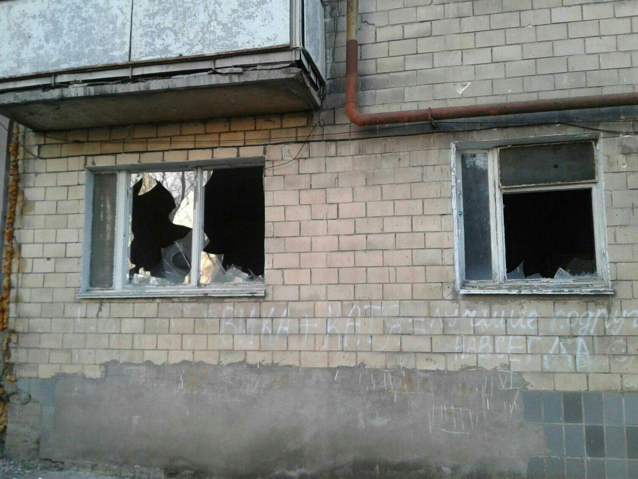 ул.Ленкоранская, д.14 — частично повреждено остекление;