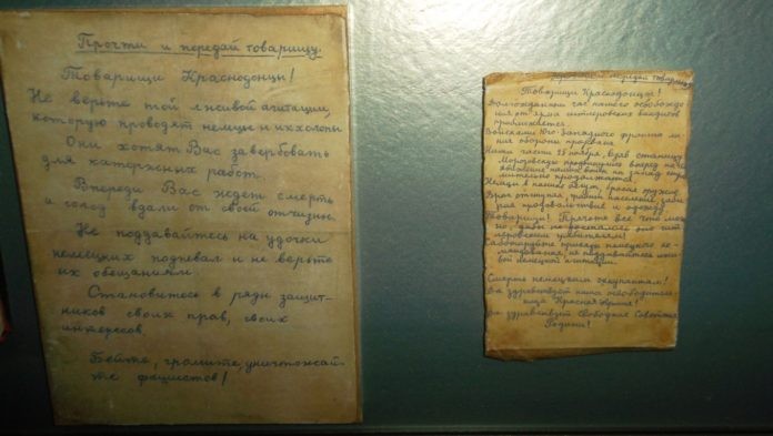 Для составления листовок использовались и другие источники. Одна из участниц «Молодой гвардии», Любовь Шевцова, ночью пробралась на почту и похитила письма бывших жителей Краснодона, работающих в Германии. В них было рассказано о тяжелом и непосильном труде у немцев. В последующем, юные подпольщики распространили эту информацию среди населения, что сорвало фашистам план вербовки людей для отправки в Германию.