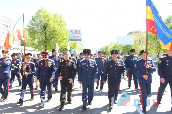 Казаки ЛНР впервые в одном строю прошли на первомайском шествии в Луганске