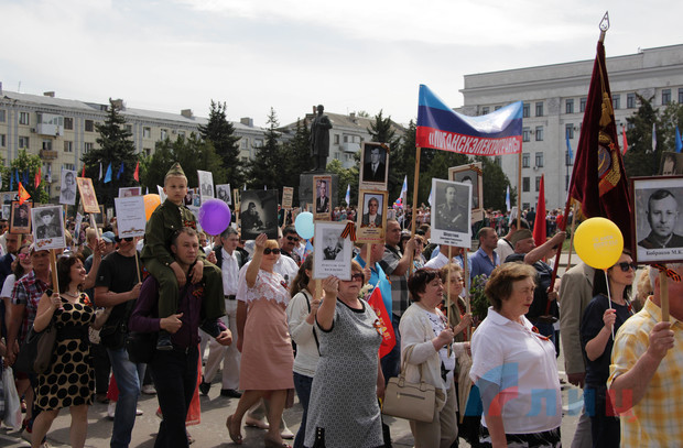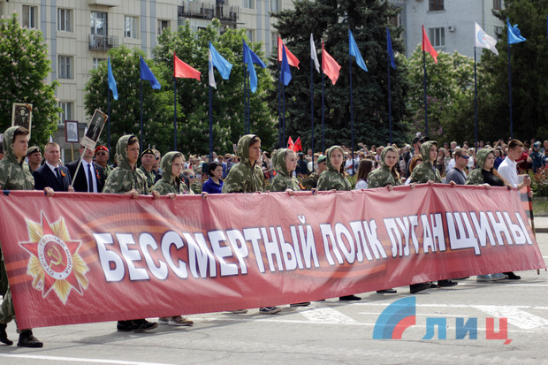 "Сегодня, в наш добрый светлый праздник День Победы, проходит "Бессмертный полк", в котором принимают участие все жители Луганщины, жители Луганска, других городов Республики, которые чтят память своих дедов и прадедов", - сказал министр культуры, спорта и молодежи ЛНР Дмитрий Сидоров.