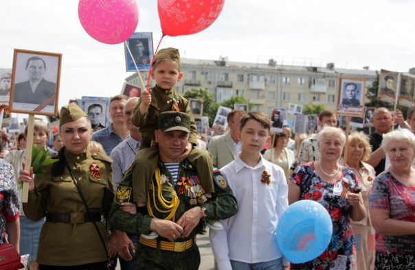 Он отметил, что сегодня в колонне полка родственники пронесли портреты защитников Родины 1941-1945 годов и в ходе противостояния в Донбассе.