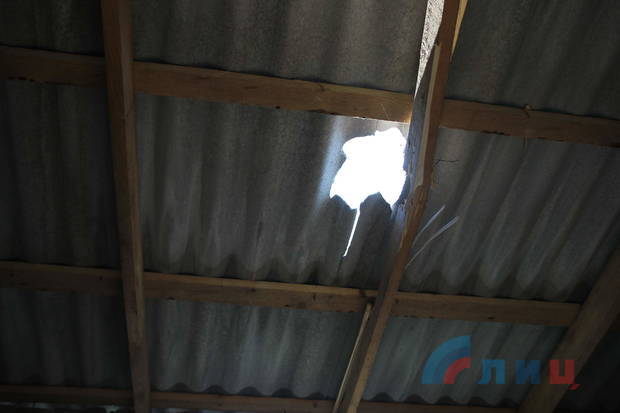 "Утром в 5 часов мы слышали свисты, а затем какие-то хлопки. Взрыва как такового и не было. Сначала и не поняла, что такое произошло, но затем пошли, открыли двери, залезли на крышу и оказалось, что крыша там пробита, затем в одну комнату, потому в другую и только потом он (снаряд) вылетел, - рассказала очевидец обстрела Ольга Осадчая. - Летело скорее не со стороны Станицы, а, похоже, что с Кондрашевки".