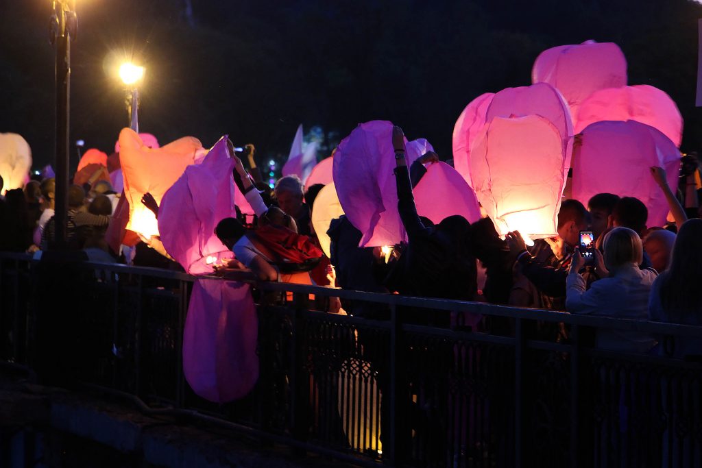1 июня, в честь празднования Международного дня защиты детей, жители и гости города выпустили в небо над Донецком около тысячи зажженных фонариков в память о детях, погибших на территории Донбасса в результате украинской агрессии.