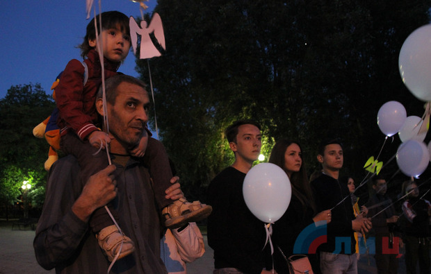 Жители Луганска в Международный день защиты провели акцию "Ангелы" в память о детях Республики, погибших в результате киевской агрессии. Об этом с места события в районе храма в честь иконы Божией Матери "Умиление".