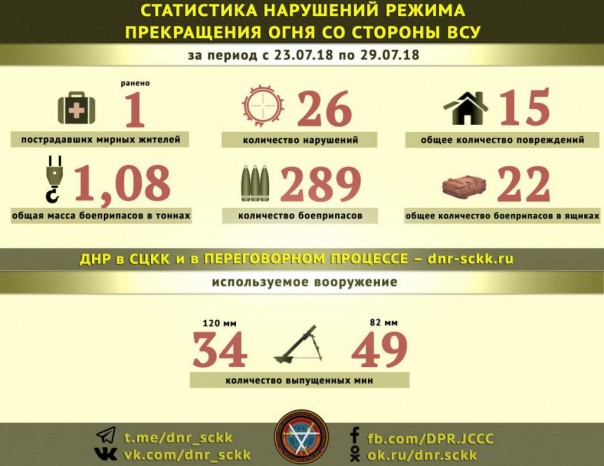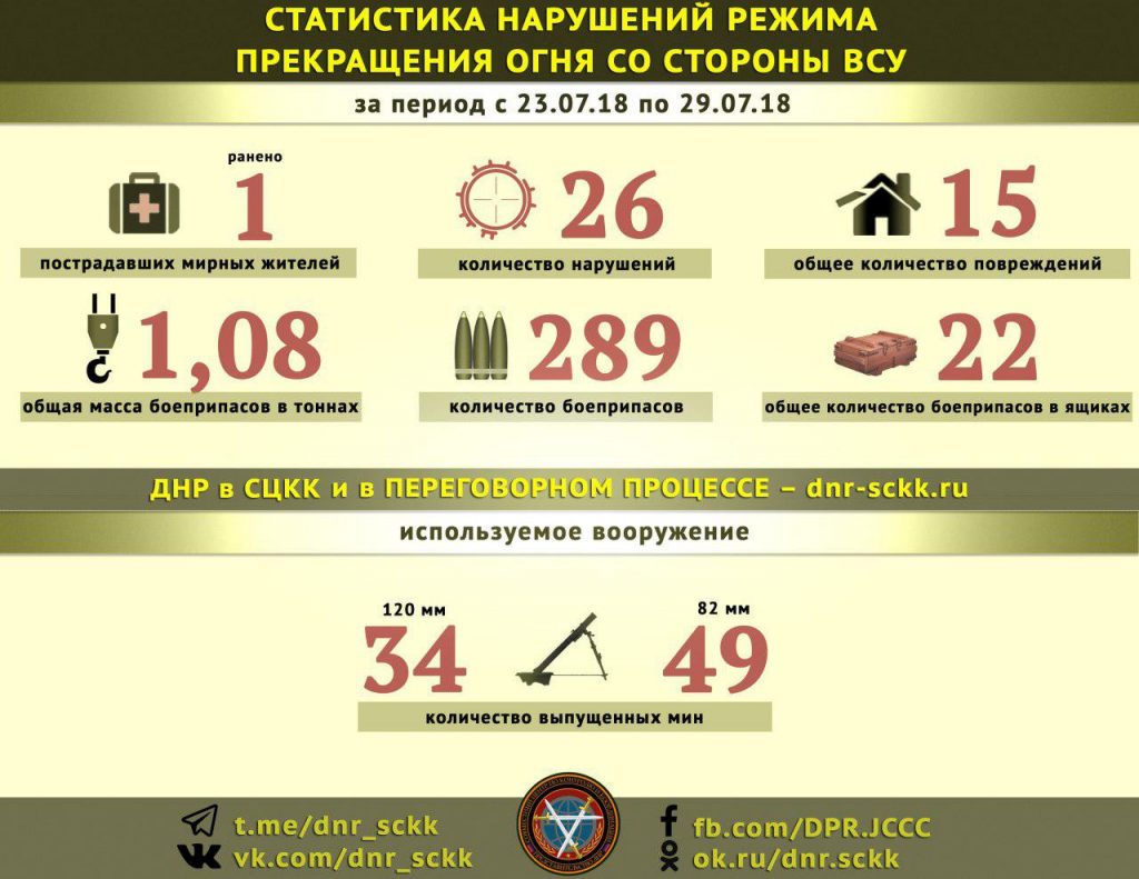 Заявление официального представителя УНМ ДНР по обстановке на 31 июля 2018 года