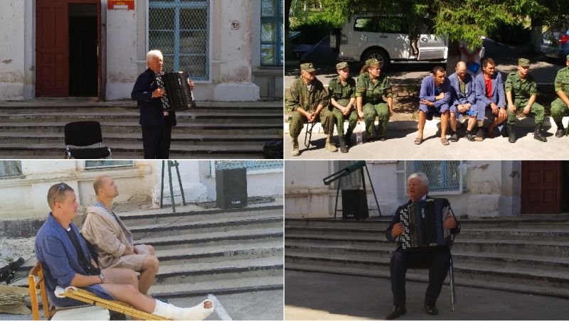 …Вместе с Международной волонтерской группой «Москва-Донбасс» (руководитель - Елена Романенко) мы посетили бойцов, находящихся на лечении в местном госпитале, а также их сослуживцев, несущих службу. Этот госпиталь оборудован на базе гражданской больницы, здесь также оказывают медицинскую помощь и мирным жителям.
