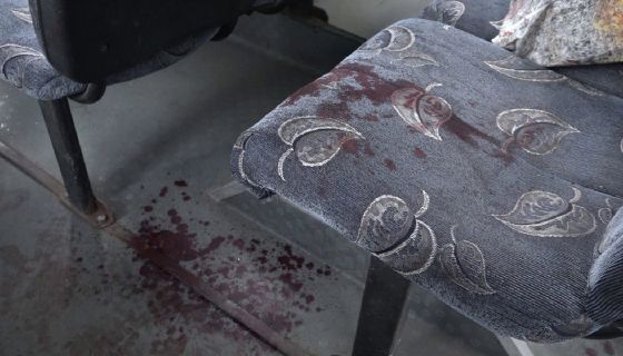 Автобус компании «Вода Донбасса», обстрелянный украинскими солдатами из пулемёта зимой 2018.