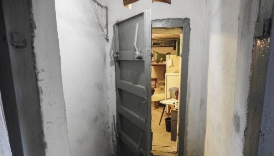 Сопровождающий нас работник призывает пригнуть головы: потолки над лестничным маршем низкие, спускаться приходится сгорбившись. За следующей дверью, уже в подземелье, попадаешь в комнату, заставленную коробками с брендом ММКК (Международной миссии Красного Креста), — организация периодически помогает с реагентами, необходимыми для очистки воды, которые стоят, мягко говоря, недёшево, и изредка поставляет другую гуманитарку.