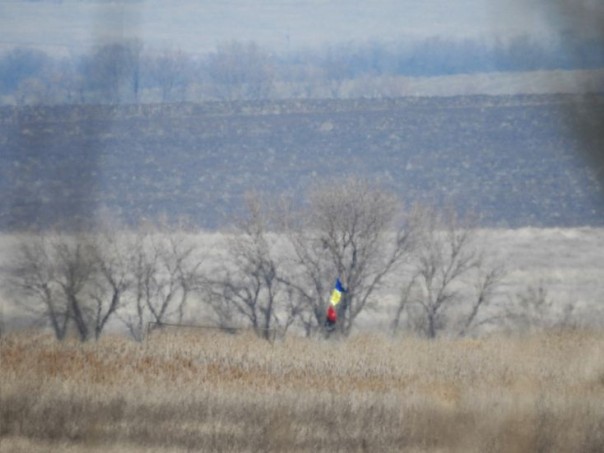 В общем, становится очевидно, что дальнейшая наша работа здесь будет проходить под прицелом ВСУ буквально. Но зума нашей техники окажется достаточно, чтобы заснять флаги Незалежной и "Правого сектора", признанного в России террористической организацией, а при желании на фото можно разглядеть их блиндажи, наблюдательные пункты и окопы.