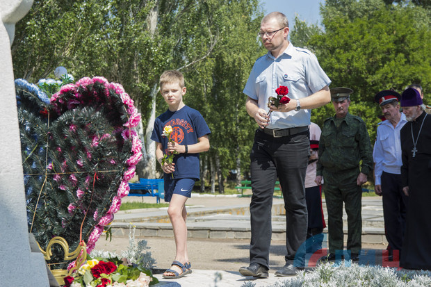 В памятном мероприятии приняли участие члены Специальной комиссии при главе ЛНР по сбору и фиксации военных преступлений военно-политического режима Украины против населения ЛНР, активисты общественных организаций, казаки Луганского округа донских казаков Всевеликого Войска Донского, молодежь и жители Луганска.