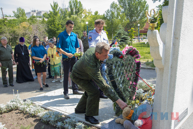 "Сегодня возле памятника погибшим детям Луганщины мы собрались вспомнить Ивана Ермилова, вспомнить всех погибших в результате авиаударов по Станице Луганской и станции Кондрашевской", - отметил член правления общественной организации "Мемориал", участник Специальной комиссии при главе ЛНР по сбору и фиксации военных преступлений военно-политического режима Украины против населения ЛНР Сергей Белов.