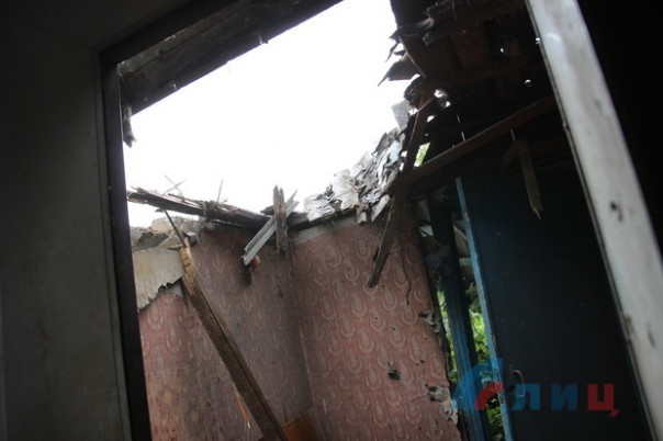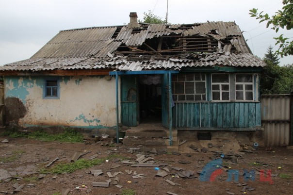 Сегодня подразделения 14 бригады под командованием военного преступника ВОЙЧЕНКО из района населенного пункта НОВОТОШКОВСКОЕ из станковых противотанковых гранатометов и минометов обстреляли населенный пункт ГОЛУБОВСКИЙ, цинично вели прицельный огонь по жилым домам. В результате обстрела повреждены ЧЕТЫРЕ домовладения на улице Юбилейной. В одном из домов снаряд пробил крышу дома, в котором в момент обстрела находилась семья с ТРЕМЯ маленькими детьми, лишь только по счастливой случайности никто из мирных жителей не пострадал.