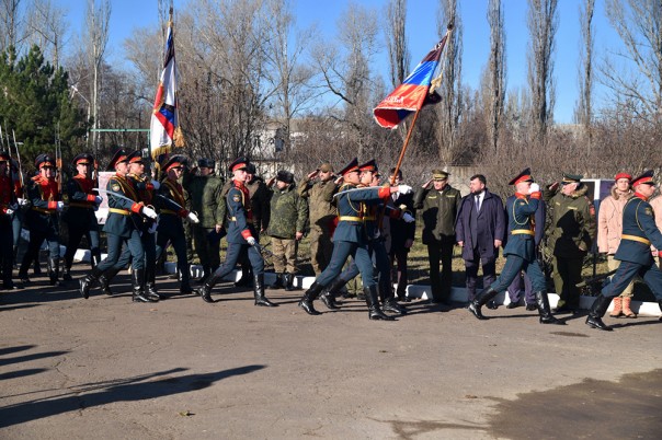 «Товарищи военнослужащие! Сегодня мы открываем мемориальную доску в память о первом Главе Донецкой Народной Республики, Герое Республики Александре Захарченко.