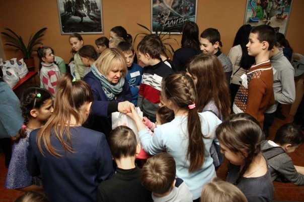 Депутат также вручила детям новогодние сладкие подарки от ОД «Донецкая Республика», после чего ребята посмотрели мультфильм «Эверест».