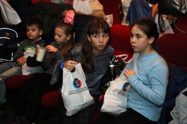 Народная Милиция ДНР совместно с международной волонтерской группой «Москва-Донбасс» посетили праздничный концерт в г. Харцызск «Коляда-коляда», на котором выступали детские коллективы со всей Донецкой Народной Республики. Также всем участникам праздничного концерта были вручены сладкие подарки.