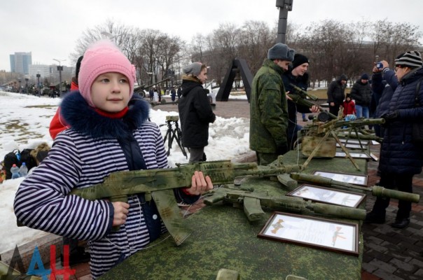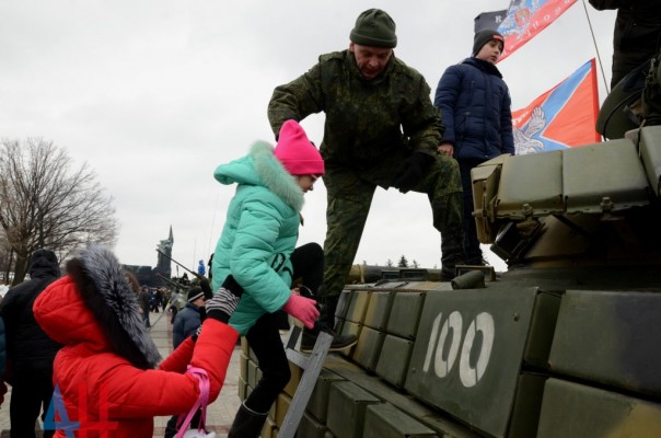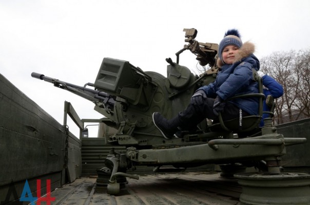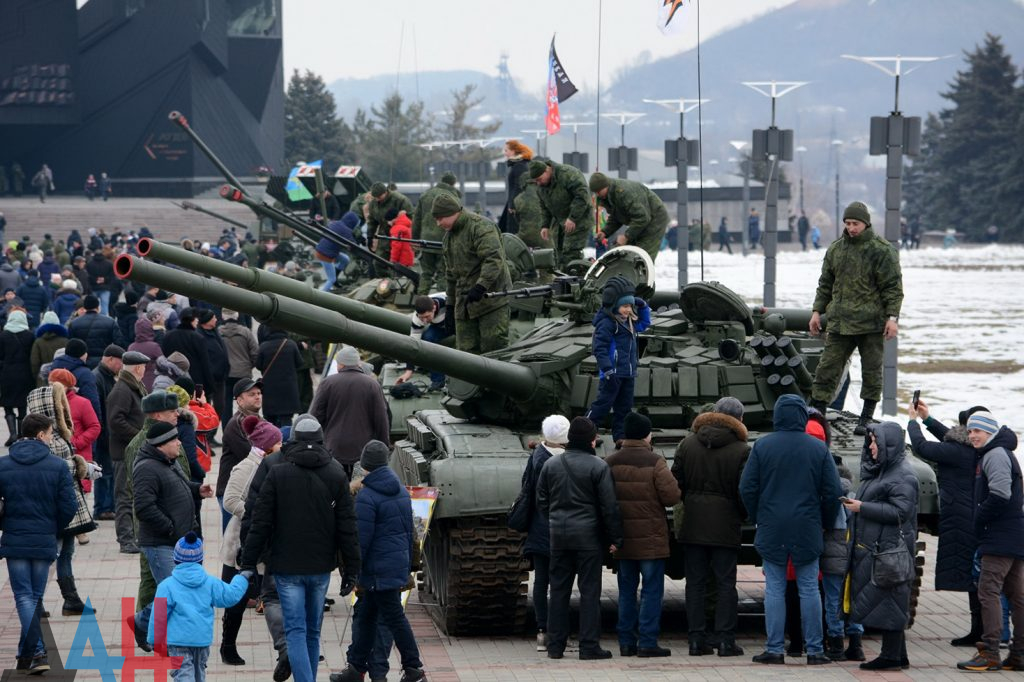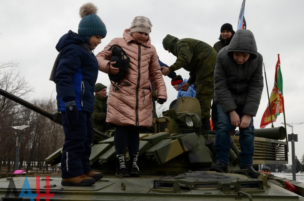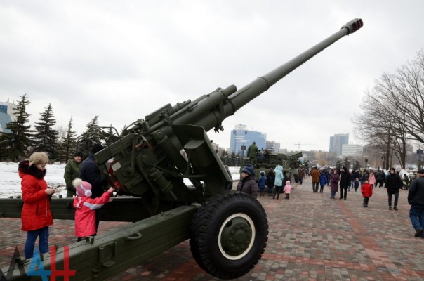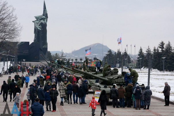 Выставка военной техники и амуниции, организованная в рамках празднования Дня защитника Отечества, собрала в Донецке сотни жителей и гостей города. Традиционно она прошла у памятника «Твоим освободителям, Донбасс» в парке Ленинского Комсомола.