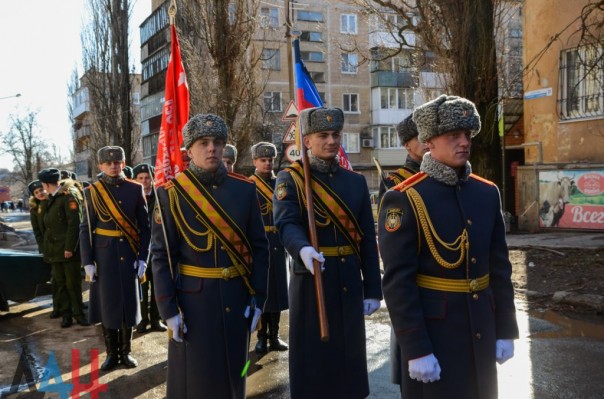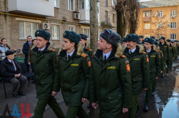 Сначала перед ветераном маршем прошла колонна курсантов Донецкого высшего общевойскового командного училища, за ними проследовали учащиеся академий гражданской защиты МЧС и внутренних дел ДНР, а также воспитанники военно-патриотического движения «Молодая Гвардия – Юнармия». Аккомпанемент параду обеспечивал духовой оркестр ДонВОКУ.