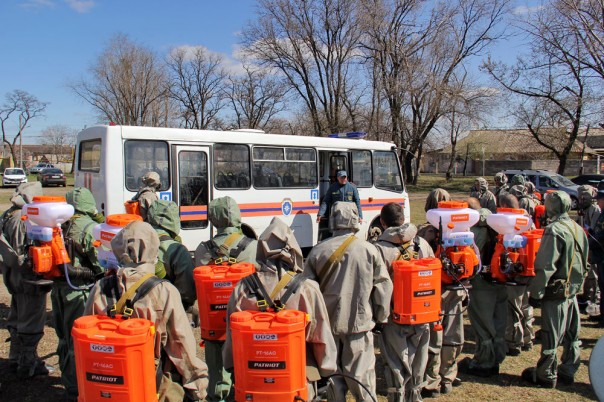 Сегодня, 1 апреля, проведены занятия с личным составом в подчиненных подразделениях по действиям при обеззараживании территории. В ходе занятия были отработаны действия по специальной обработке помещений, техники, транспорта и территории.