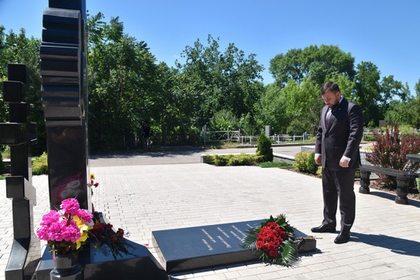 В память о Михаиле Толстых состоялось открытие «Звезды Героя ДНР». Глава ДНР Денис Пушилин возложил цветы к могиле легендарного комбата