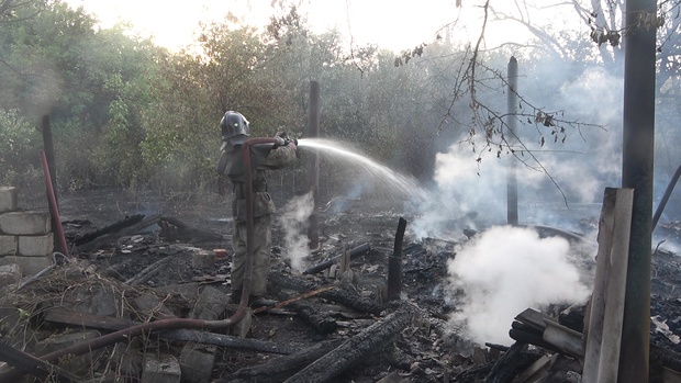 "Пожар был ликвидирован в 00:46 следующего дня. Огнем уничтожены пять гектаров сухой травы, два жилых дома общей площадью 99,8 квадратных метра, деревянные заборы на площади 290 погонных метров, три летние кухни на площади 34,6 квадратных метра, девять сараев на площади 93,20 квадратных метра, два летних душа площадью 3,8 квадратных метра, пять дачных домов", - говорится в сообщении.