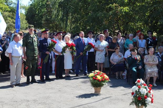 В митинге и возложении цветов приняли участие жители города, ветераны Великой Отечественной войны и трудового фронта, советник главы ЛНР по вопросам казачества, кадетского образования и военно-патриотического воспитания молодежи Сергей Юрченко, депутат Народного Совета ЛНР Виталий Кишкинов, глава администрации Алчевска Наталья Пяткова.