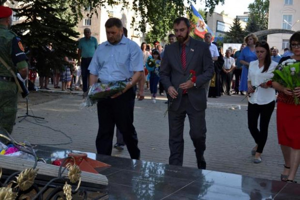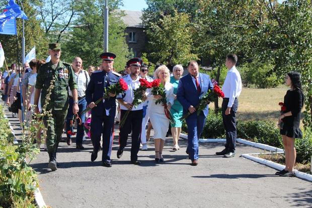 Кроме того, руководитель района и представители администрации возложили цветы к мемориальным доскам защитникам Лутугинщины в Лутугино и в населенных пунктах района, а учащиеся общеобразовательных учреждений торжественно заступили на Вахту памяти.