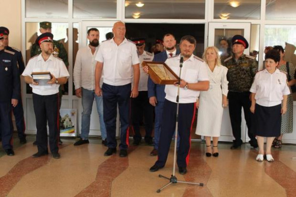 В годовщину освобождения города от немецко-фашистских захватчиков в Алчевском казачьем кадетском корпусе имени Матвея Платова состоялось торжественное построение. Поприветствовать кадетов прибыл атаман Союза казаков-воинов России и зарубежья Николай Дьяконов. Он поздравил юных жителей города с памятной датой и передал в дар кадетскому корпусу икону Донской Божьей матери и книги об истории Донского казачества.