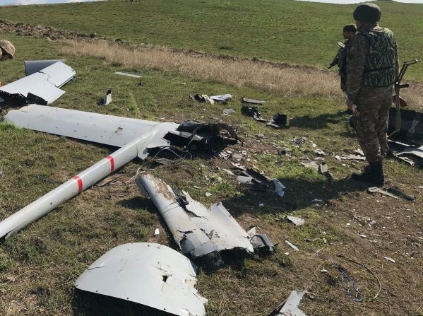 Один из немногих азербайджанских «байрактаров», сбитых армянскими военными в Нагорном Карабахе, октябрь 2020 г.
