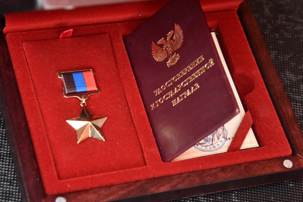 Сегодня, 23 марта, Глава Донецкой Народной Республики Денис Пушилин вручил медаль «Золотая Звезда» вдове гвардии капитана Сергея Носовского, которому присвоено звание Героя Донецкой Народной Республики, а также передал 19-летней дочери погибшего гвардии младшего сержанта Владимира Пятака Георгиевский крест IV степени. Об этом сообщает пресс-служба АГ ДНР.