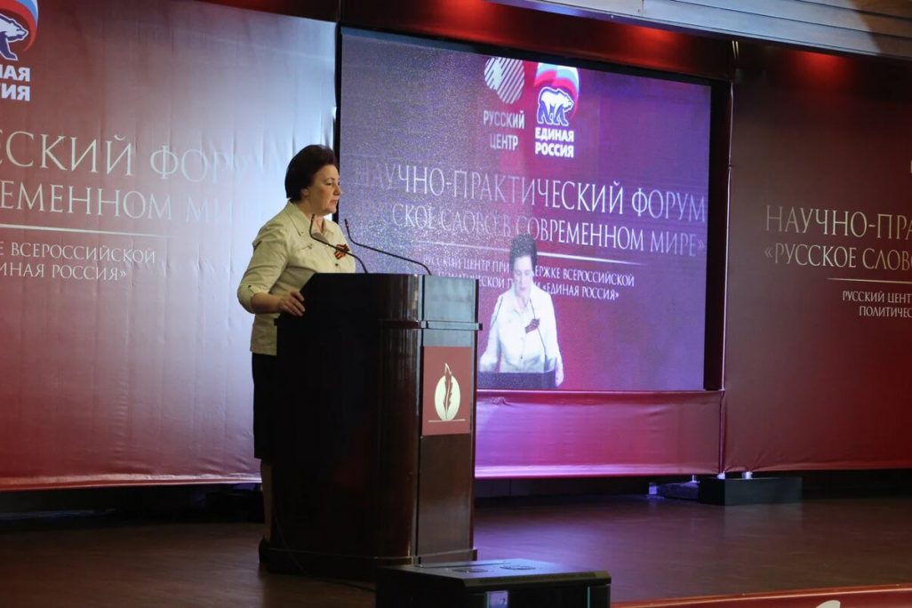 Тема ее выступления: «Русский язык как орудие русофобской политики современной Украины против России и Донбасса». В своем докладе она подробно проанализировала ситуацию с русским языком в нынешней постмайданной Украине.