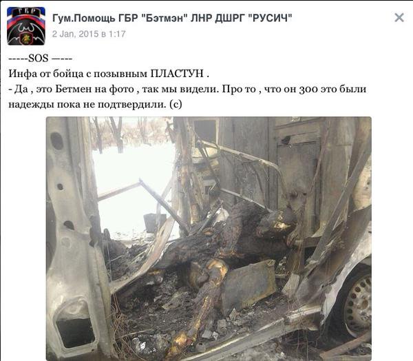 - Утром пришла информация об аресте Бэтмэна. Три часа назад о том, что он застрелен при попытке сопротивления и что работал «российский спецназ». Час назад информацию о его гибели подтвердили. Однако я до сих пор не могу сказать ничего определенного — достоверные данные будут у меня только завтра утром, после того, как в Красном Луче побывают доверенные люди. С учетом того, как распространяются в ДЛНР слухи, все может быть совсем иначе.