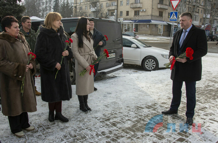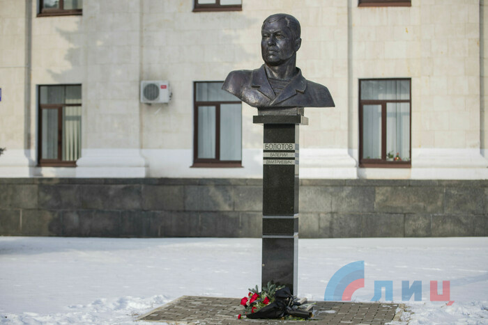 Памятное мероприятие, в котором приняли участие депутаты Народного Совета, члены Общественной палаты (ОП) ЛНР, друзья первого главы Республики, состоялось у бюста Болотова, установленного на площади Героев Великой Отечественной войны в Луганске.