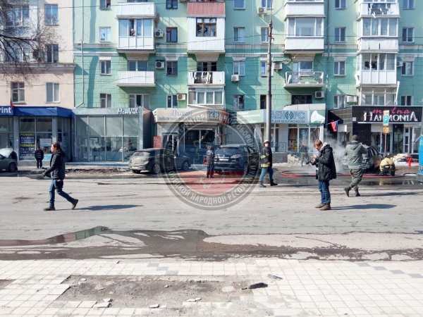 Укрофашисты применили запрещенные кассетные боеприпасы при обстреле центра Донецка. Маршевая часть ракеты "Точка-У" с кассетной боевой частью упала на перекрестке возле Дома Правительства.