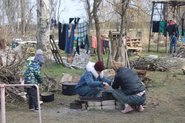 Некоторые беженцы сами готовят себе еду на костре. Например, жарят наловленного в Азовском море пиленгаса
