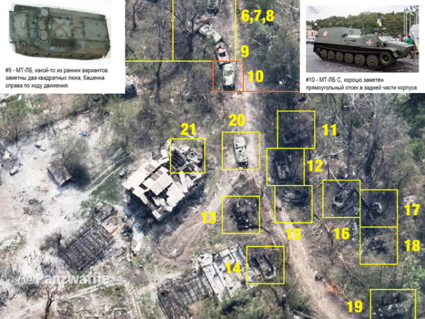 1) По составу горелой техники мы видим присутствие русской и украинской армий, а также сил ЛНР или ДНР. Записать всю кучу в русские потери уже не получится.