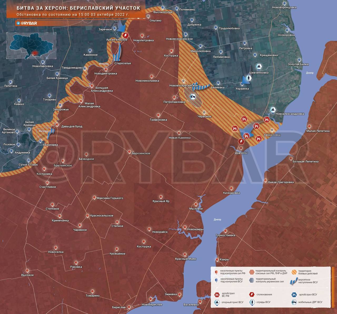 Битва за Херсон: обстановка на Бериславском участке по состоянию на 15.00 3 октября 2022 года