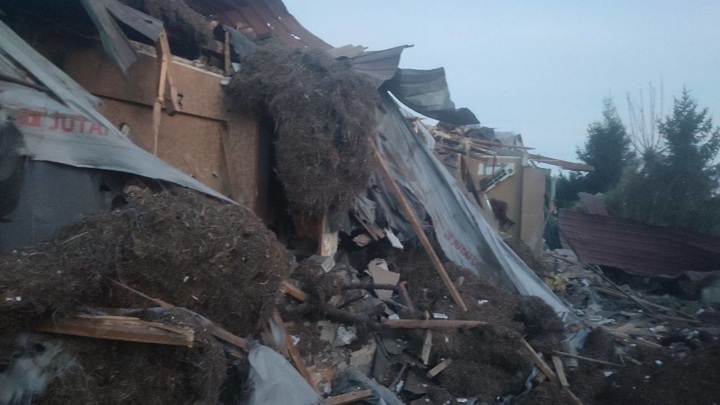 На месте ЧП идет разбор завалов, под которыми, предположительно, находятся пострадавшие. Бригада скорой помощи дежурит на месте происшествия.
