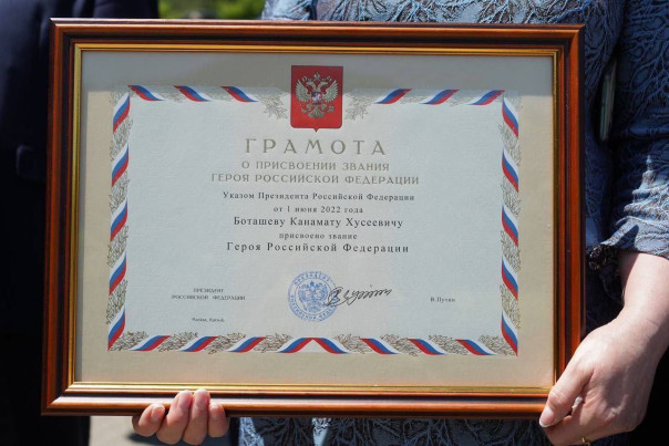 За выполнение боевых задач на Украине генерал-майору Канамату Боташеву было присвоено звание Героя России (посмертно).Информацию о награждении подтвердило информационное агентство «РИА Новости» со ссылкой на главу Карачаево-Черкесии Рашида Темрезова.
