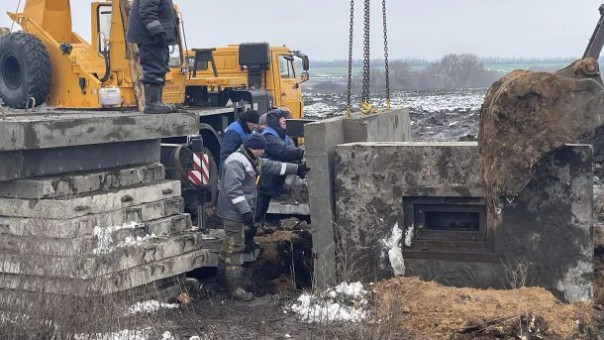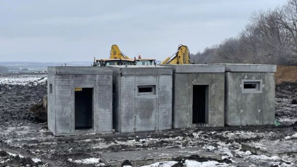 Чуть поодаль строители оборудуют позиции для личного состава: вкапывают морские контейнеры, сверху кладут бетонные плиты. В таком импровизированном блиндаже можно не только безопасно переждать самый тяжелый обстрел, но и неделями жить с относительным комфортом. Работа не прекращается — линию обороны укрепляют круглосуточно. Со стороны Луганска к фронту идут нескончаемые колонны строительной техники.